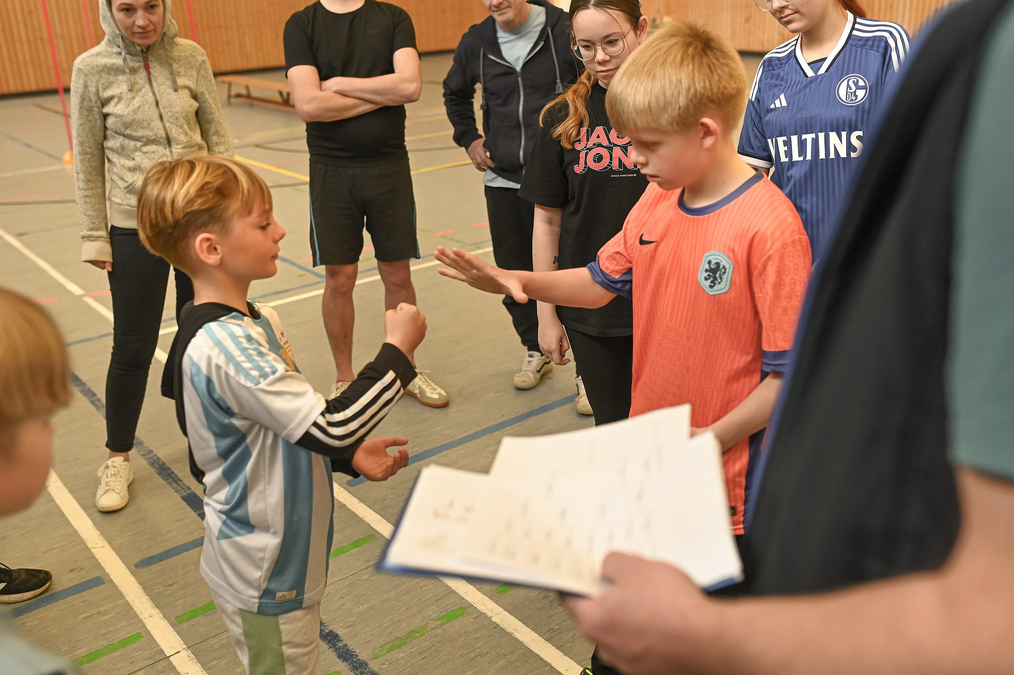 hauptsächlich Spaß im Vordergrund stand. Jörg hat sich ein paar schöne Disziplinen ausgedacht, die unsere Kinder zur Höchstform auflaufen ließen. So unter anderem Papierfliegerweitwurf, Büchsenpyramide abwerfen, Eierlauf, Kronkorken mit dem Fuß umdrehen oder präzises Bobbycarfahren, um nur einige zu nennen. Die Kinder haben in allen Kategorien ihr Bestes gegeben und beim Ausführen der Aufgaben richtig Spaß gehabt.