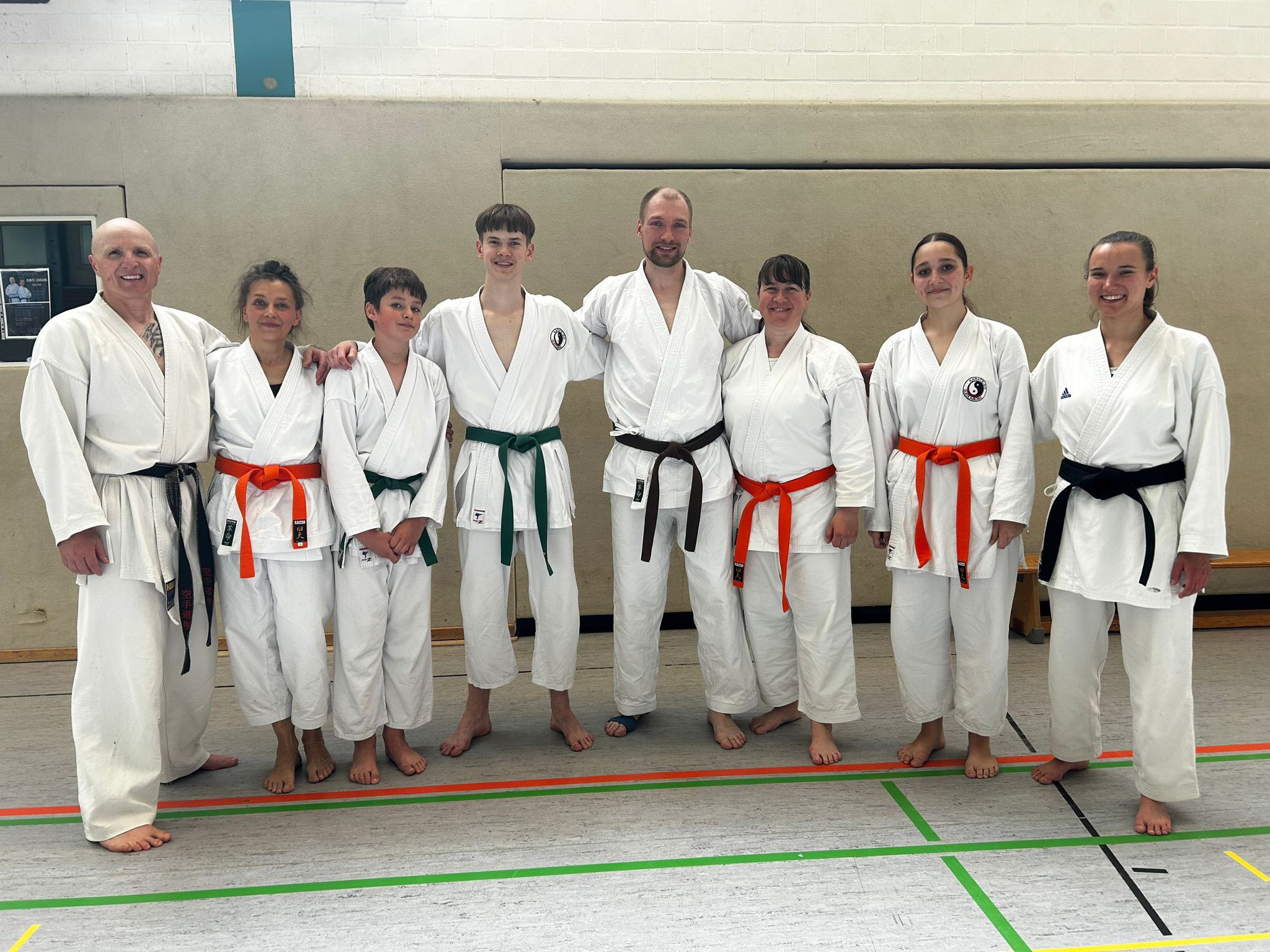 Zu Recht! Denn kurz vor den Sommerferien (23.06.2025) nutzten 8 Karateka unseres Vereins die Möglichkeit, die nächste Gürtelprüfung abzulegen.