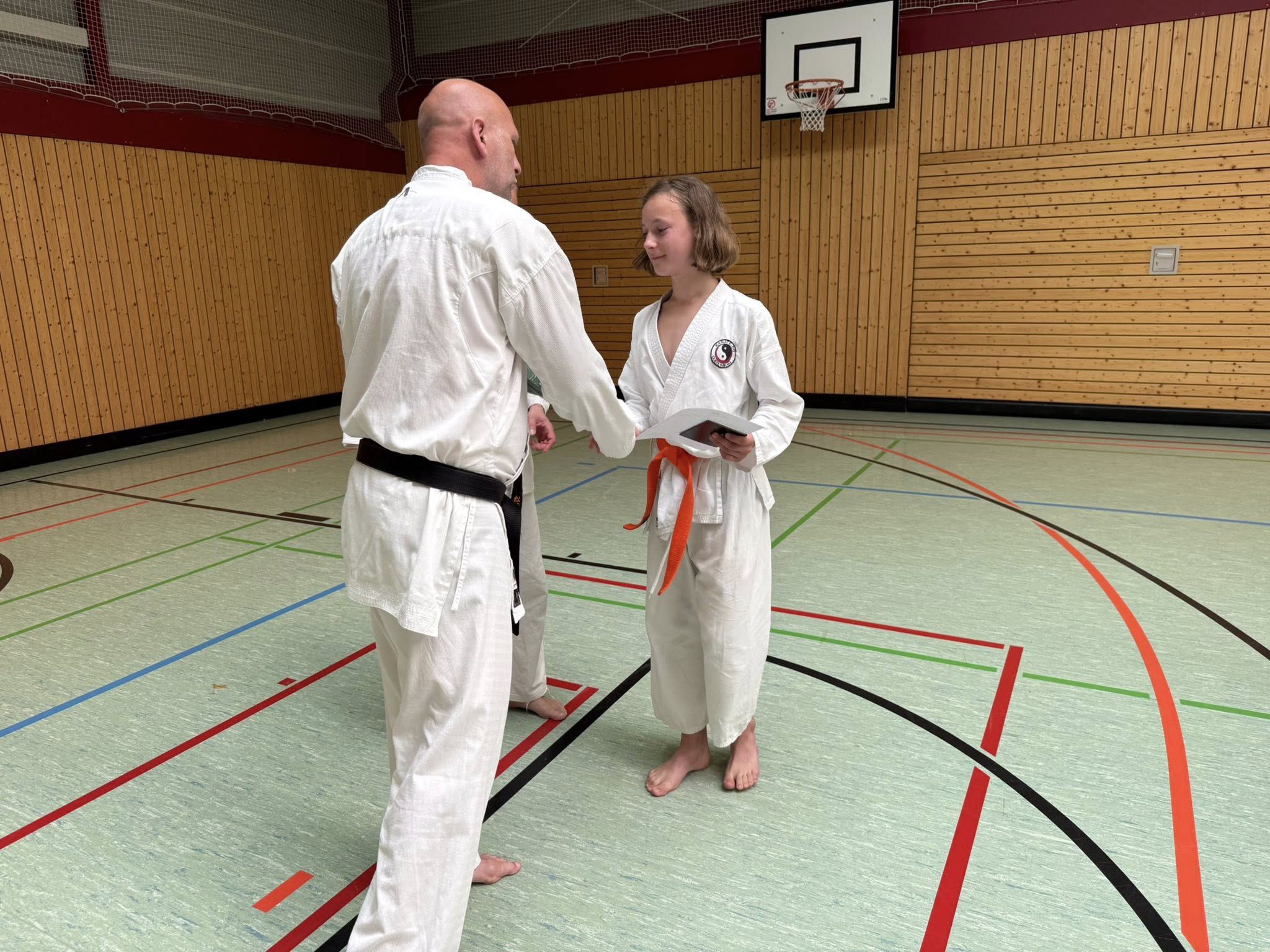 Unter den kritischen Augen des Prüfers, unseres Vorsitzenden und Trainers Jens-Uwe zeigten alle gute bis sehr gute Leistungen! Unter dem Applaus der anderen Karateka konnten sie im Anschluss von Jens-Uwe und Jörg ihre Urkunden und neuen Gürtel in Empfang nehmen. Klasse!!