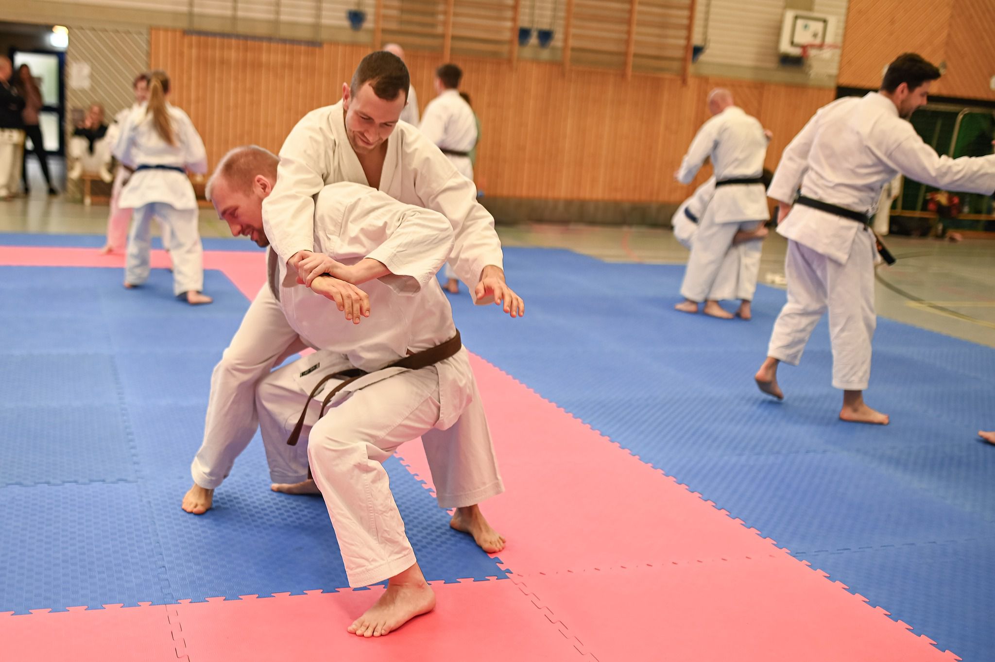 In mehreren Trainingseinheiten stand die Kata Bassai Dai im Mittelpunkt. Daraus wurden Partnerübungen - Bunkai (Anwendung der Kata) und Kumite (Kampf) - abgeleitet bzw. Parallelen aufgezeigt, welche dann intensiv geübt wurden.